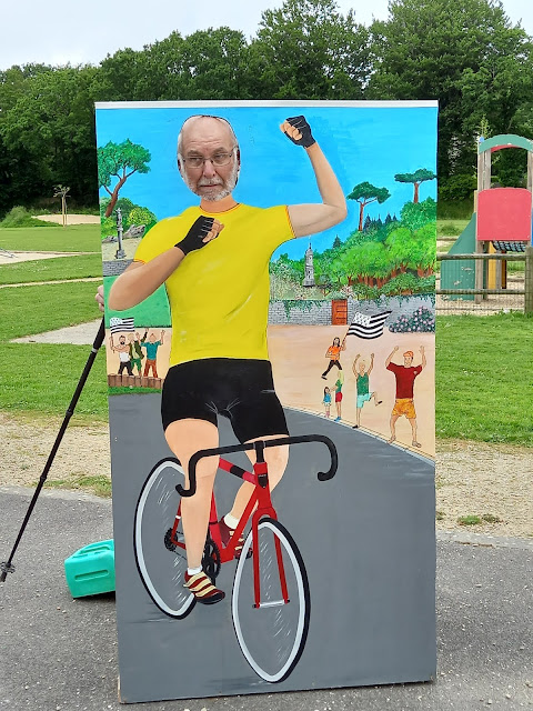 Petite pause devant les vélos et arrivée ..avec les maillots jaunes!!!